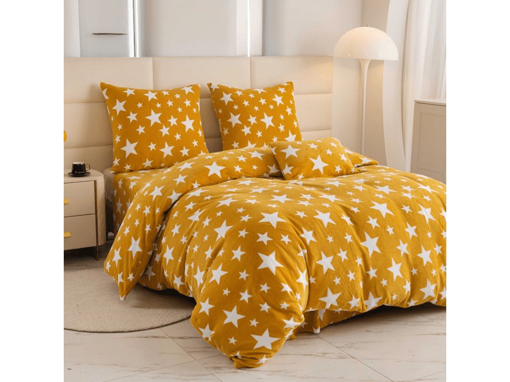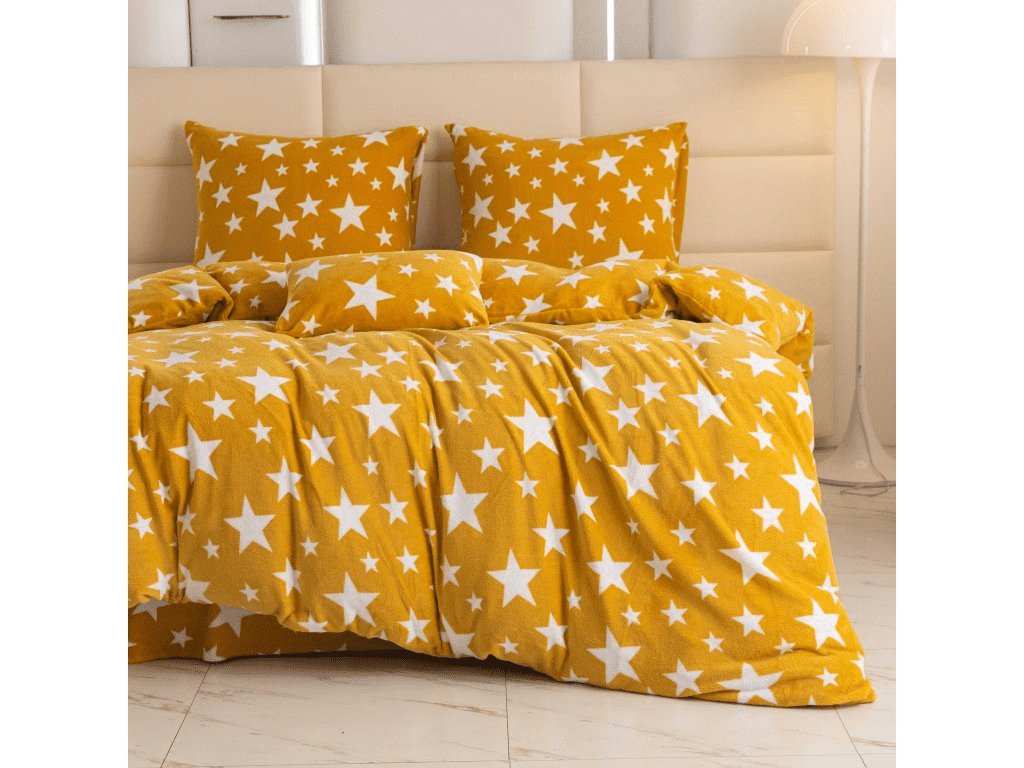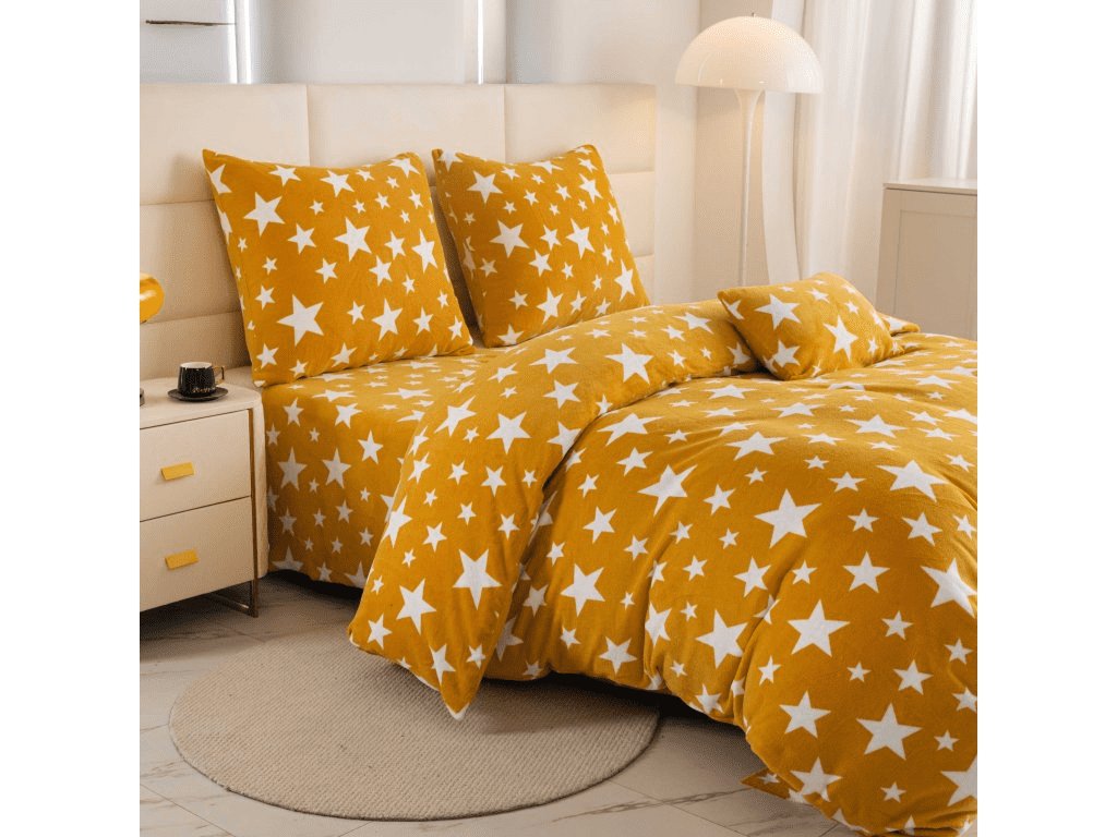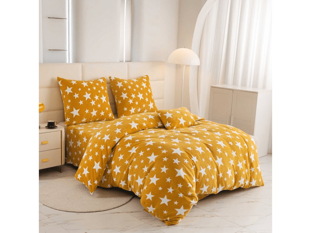Mikroplüss ágyneműhuzat szett STARS sárga-narancs + mikroplüss lepedő SOFT 180x200 cm fehér, kétszemélyes