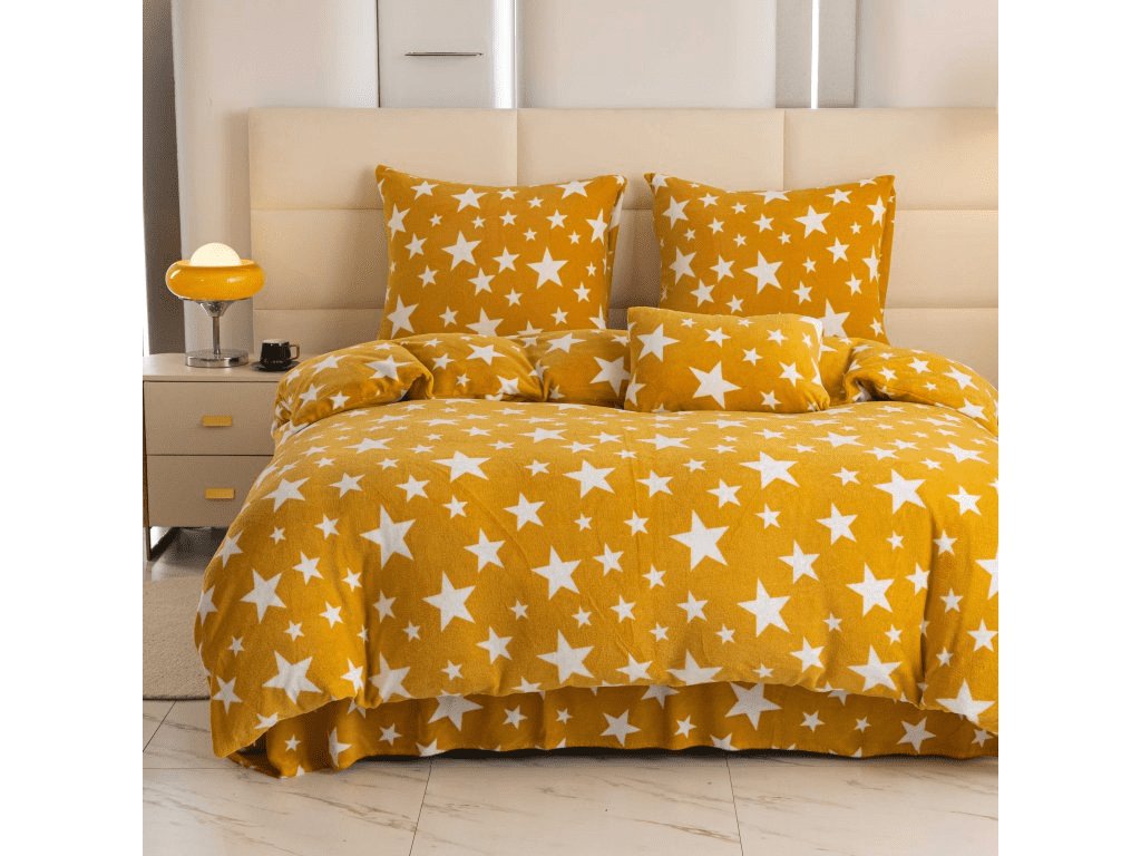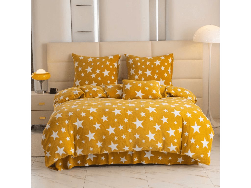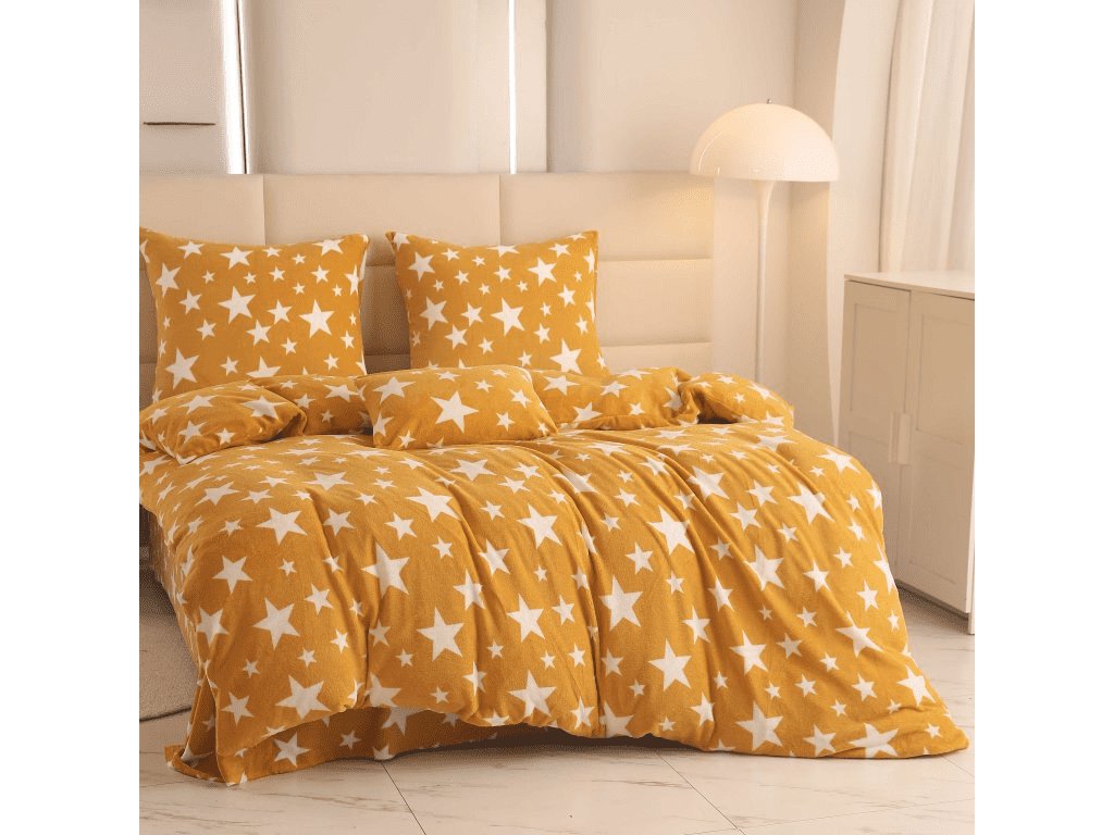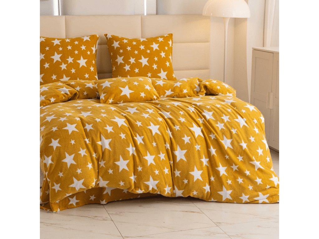 Mikroplüss ágyneműhuzat szett STARS sárga-narancs + mikroplüss lepedő SOFT 180x200 cm fehér, kétszemélyes