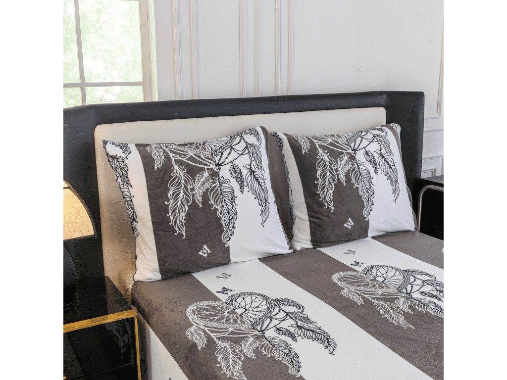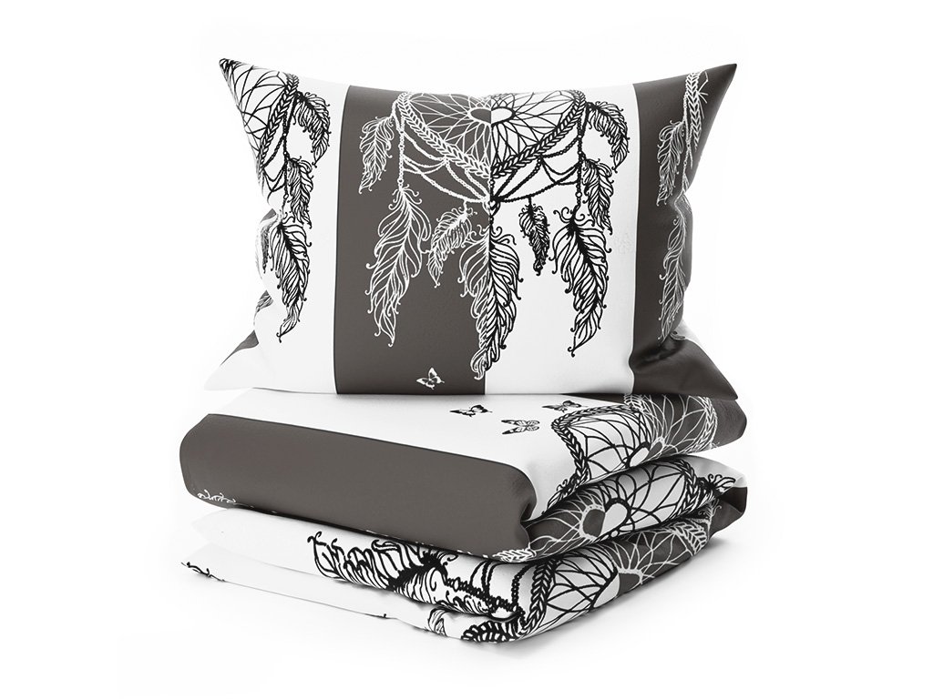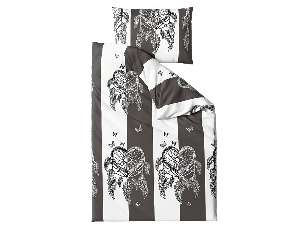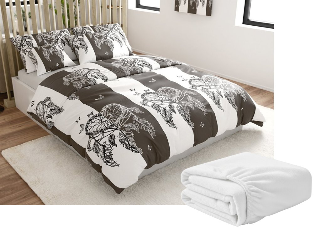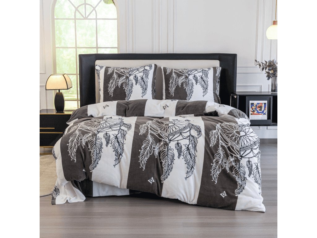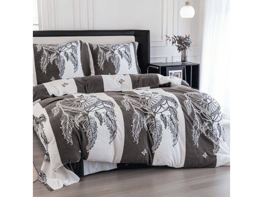 Mikroplüss ágyneműhuzat szett TIRSO szürke-fehér + mikroplüss lepedő SOFT 90x200 cm fehér, egyszemélyes ágyra