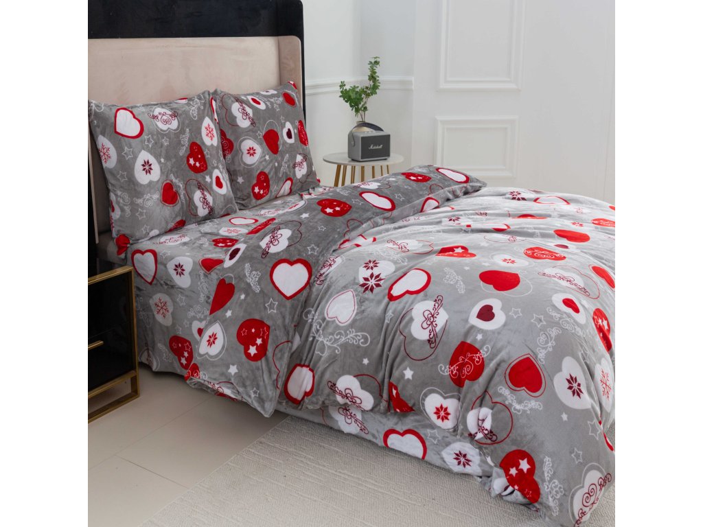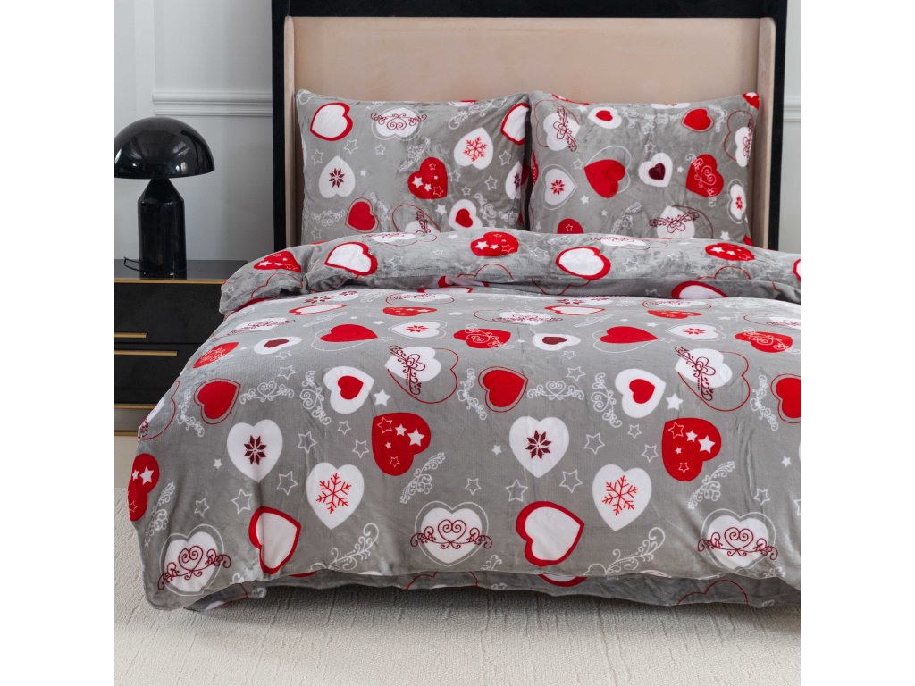 Szett 2 db mikroplüss ágyneműhuzat CHRISTMAS HEART szürke + mikroplüss lepedő SOFT 180x200 cm fehér, kétszemélyes ágyhoz