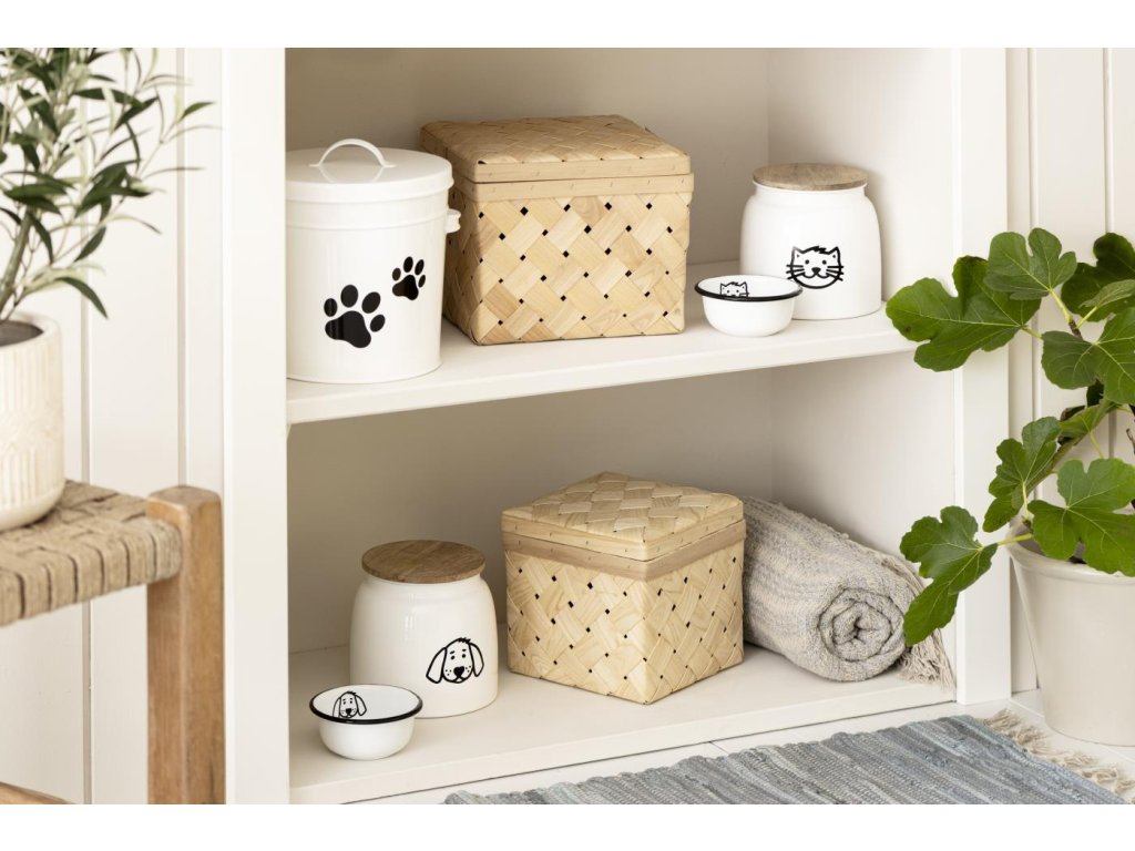 Fehér fém kutyaeledel tároló fa fedéllel DOG FOOD