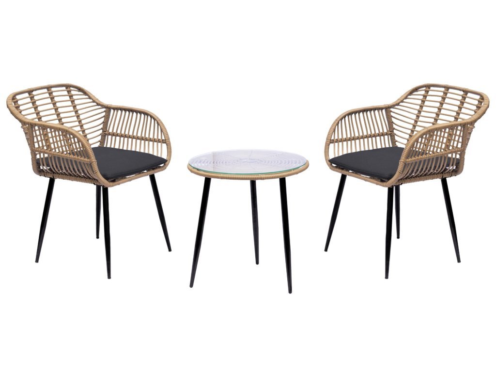 TURIA fekete rattan kerti garnitúra