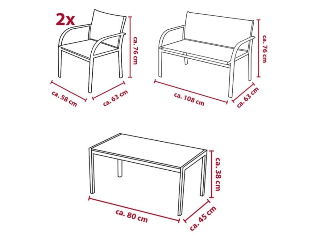 Kerti LOUNGE szett székekkel, paddal és asztallal, szürke