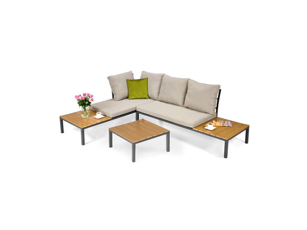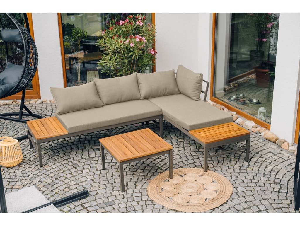 - 1x asztal, 1x sarokkanapé, 2x ülés, 4x hátpárna