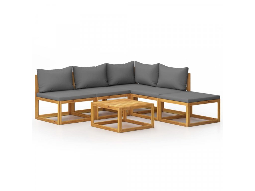 - 1x asztal, 1x sarok kanapé, 3x középső kanapé, 1x lábtartó, 5x ülőpárna, 5x hátpárna