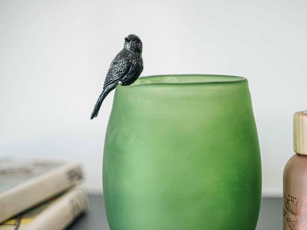 - Az alsó széle lehetővé teszi, hogy a madarat egy pohár vagy virágcserép szélére helyezze díszítésképpen