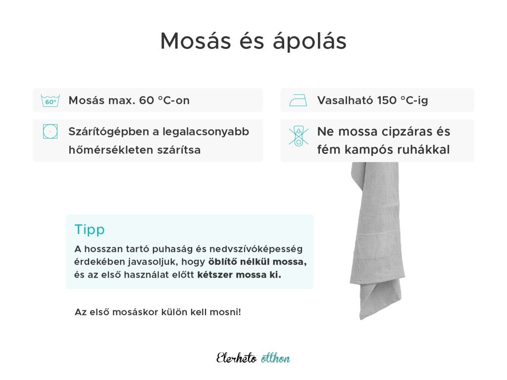 - Mosás max 60 °C-on, vasalás 150 °C-ig