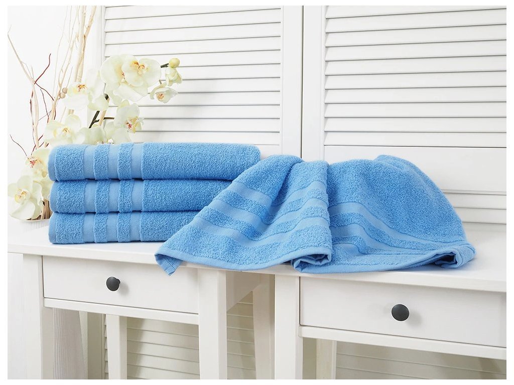 Törölköző LINEA 50x100 cm kék 100% pamutból készült 400 g/m² súllyal. A minőségi anyagnak köszönhetően lágy, puha és kíméletes az érzékeny bőrhöz, ugyanakkor elég nedvszívó és tartós a mindennapi használatra.