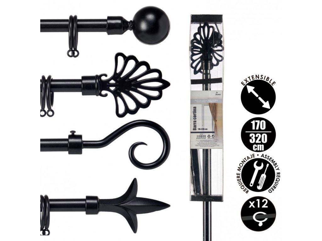 TRIDE fekete fém karnis 170-320 cm