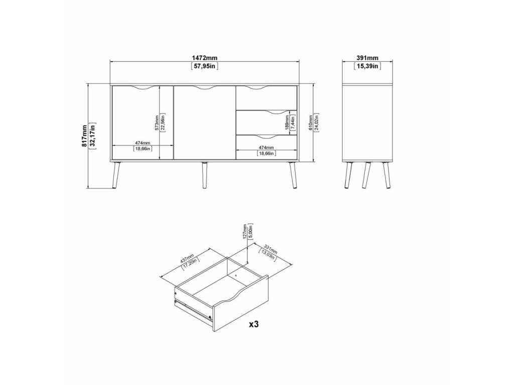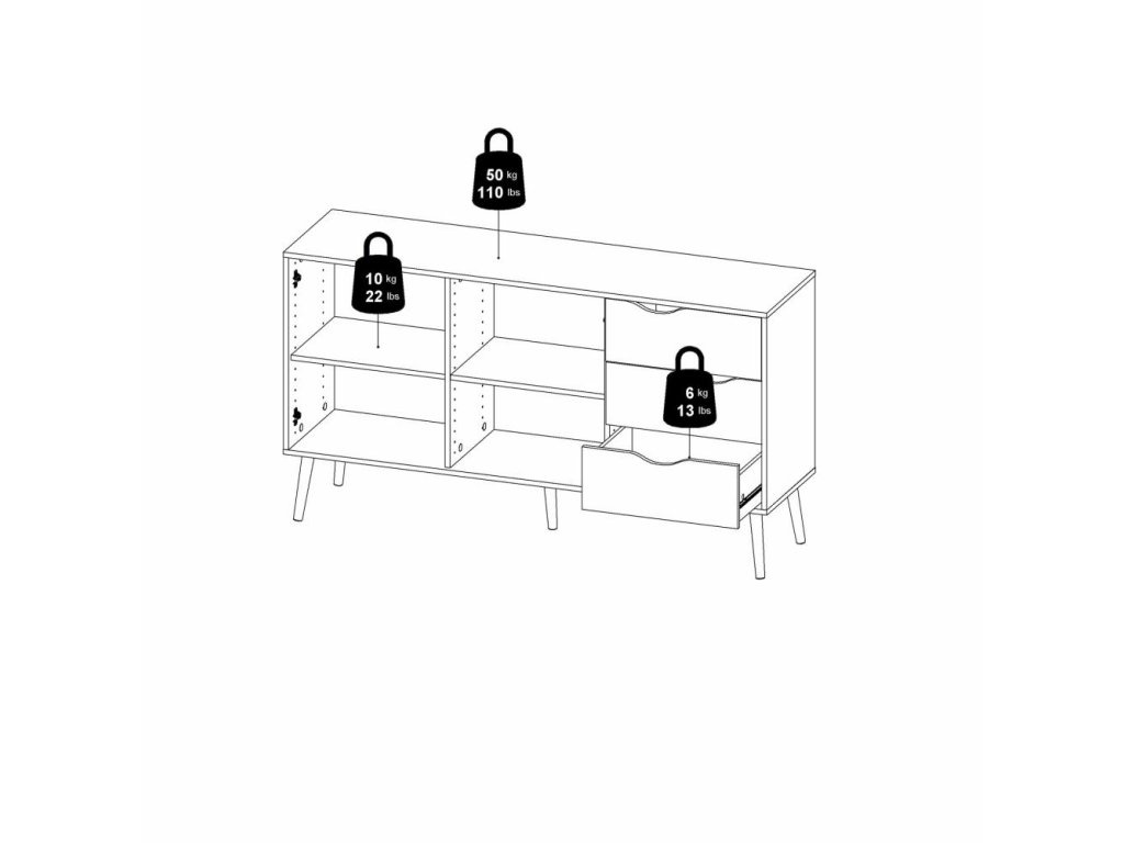 Fehér komód OSLO 75381 3 fiókkal