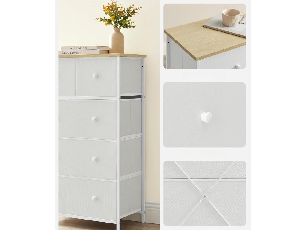 A textil fiókos komód ideális megoldás mindazok számára, akik a funkcionalitás és esztétika ötvözetét keresik. Könnyű, könnyen áthelyezhető és egyben meglepően tágas – remek választás kisebb lakásokba és nagyobb terekbe egyaránt. Legyen szó ruhákról, kiegészítőkről, dokumentumokról vagy mindennapi apróságokról, a komód segít mindent áttekinthetően és stílusosan elrendezni. Univerzális megjelenésének köszönhetően könnyen harmonizál más bútorokkal, és praktikus, elegáns segítőtárssá válik minden otthonban.