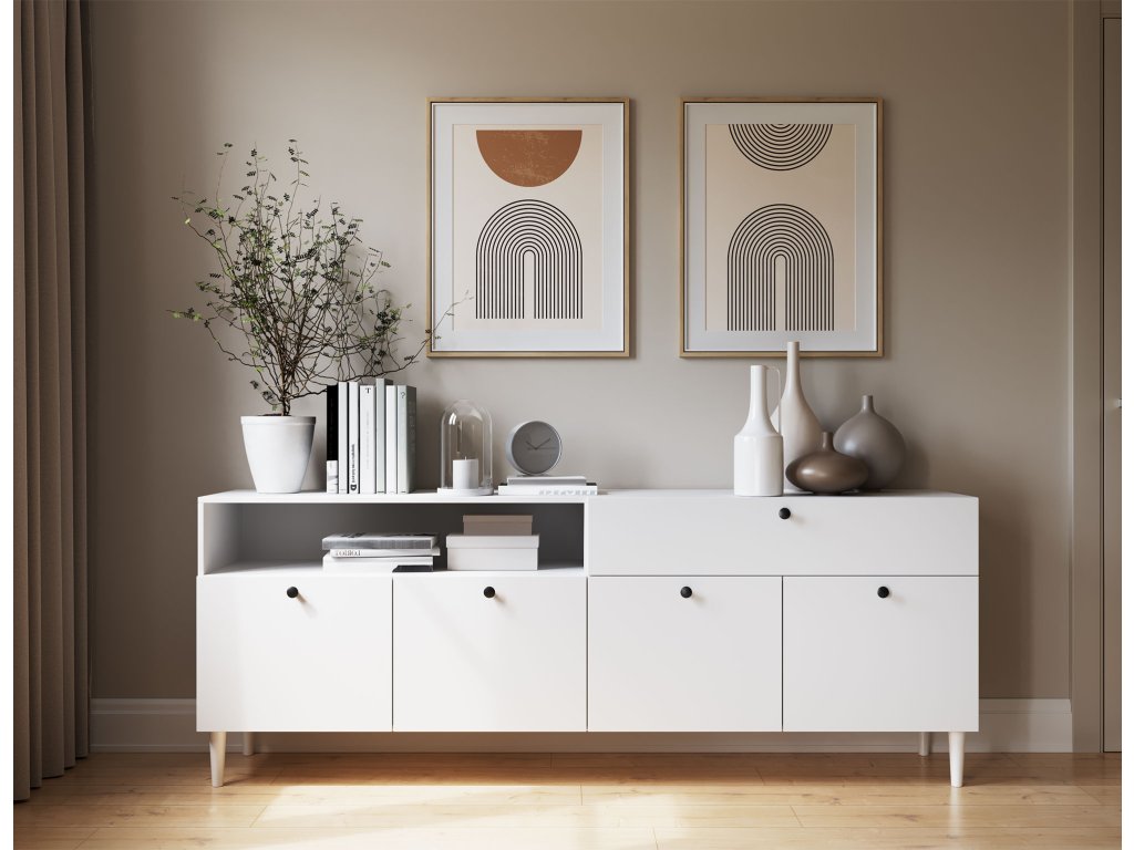Komód szekrényekkel és fiókkal DULLUM 200x75cm, fehér