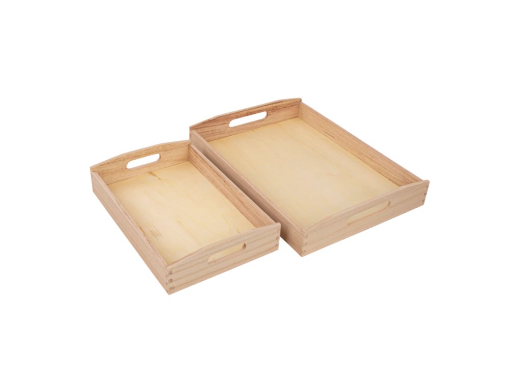 - A készlet tartalma: 2 db fa tálca, méretei 39x38 cm és 30x20 cm