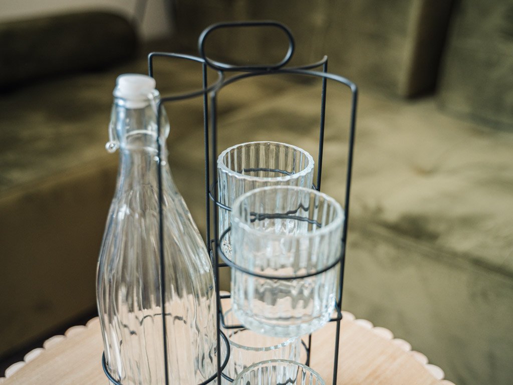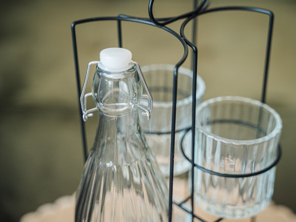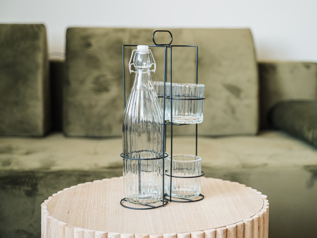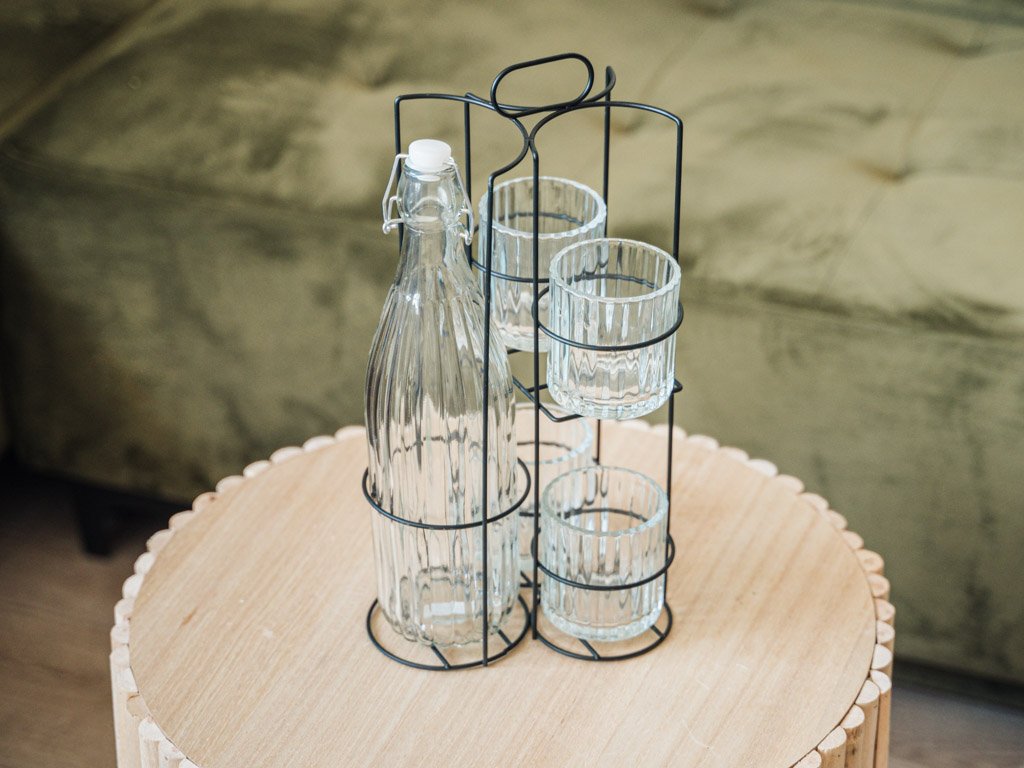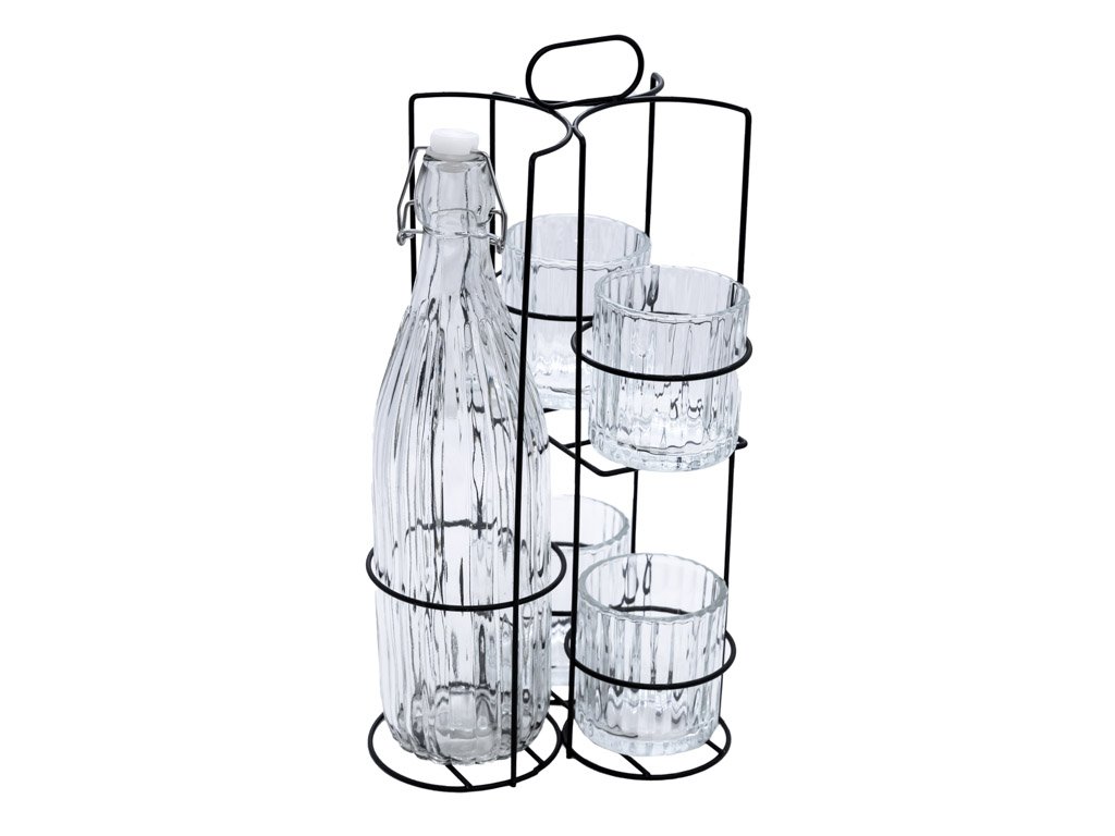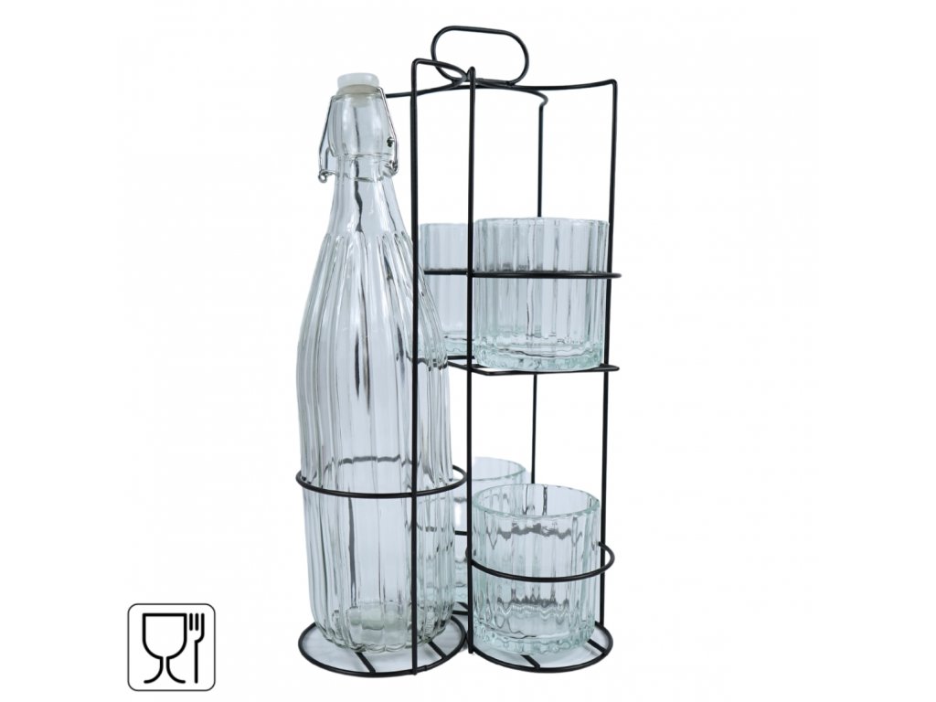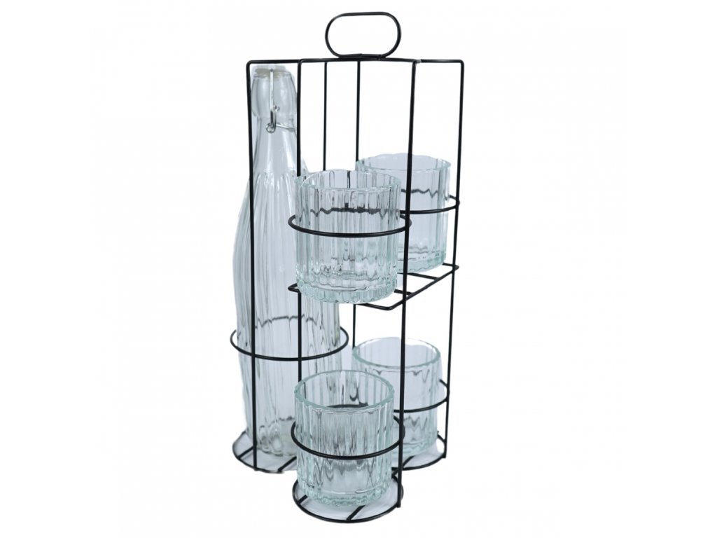 BOTTO üvegpalack 4 pohárral fém tartóban