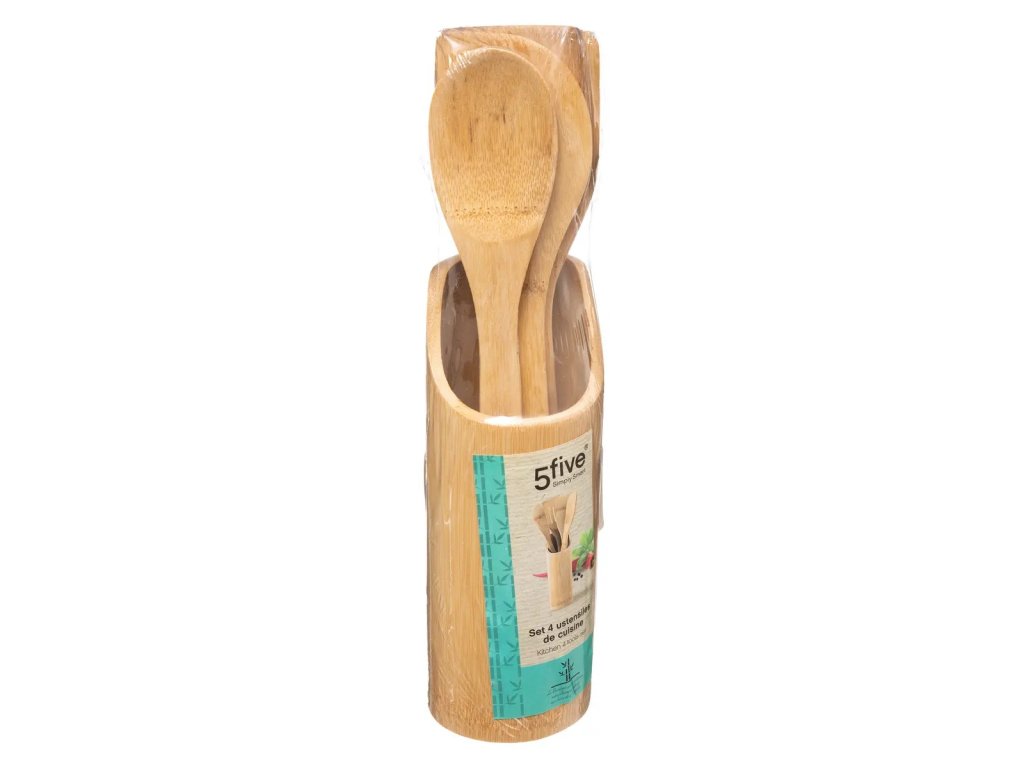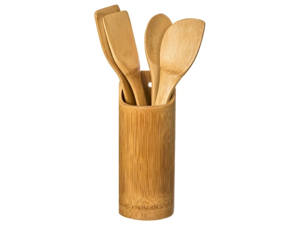 KITCHERO konyhai eszközkészlet 4 fakanál és állvány, bambusz