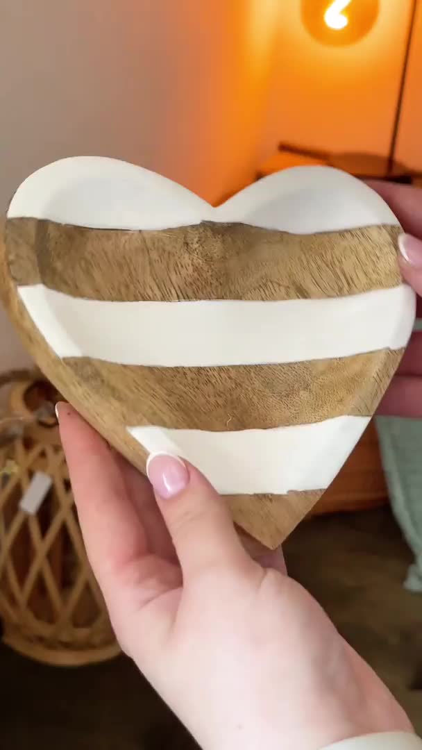 Mangófából készült szív alakú tál LOVAIRE 16x15 cm, fehér csíkok
