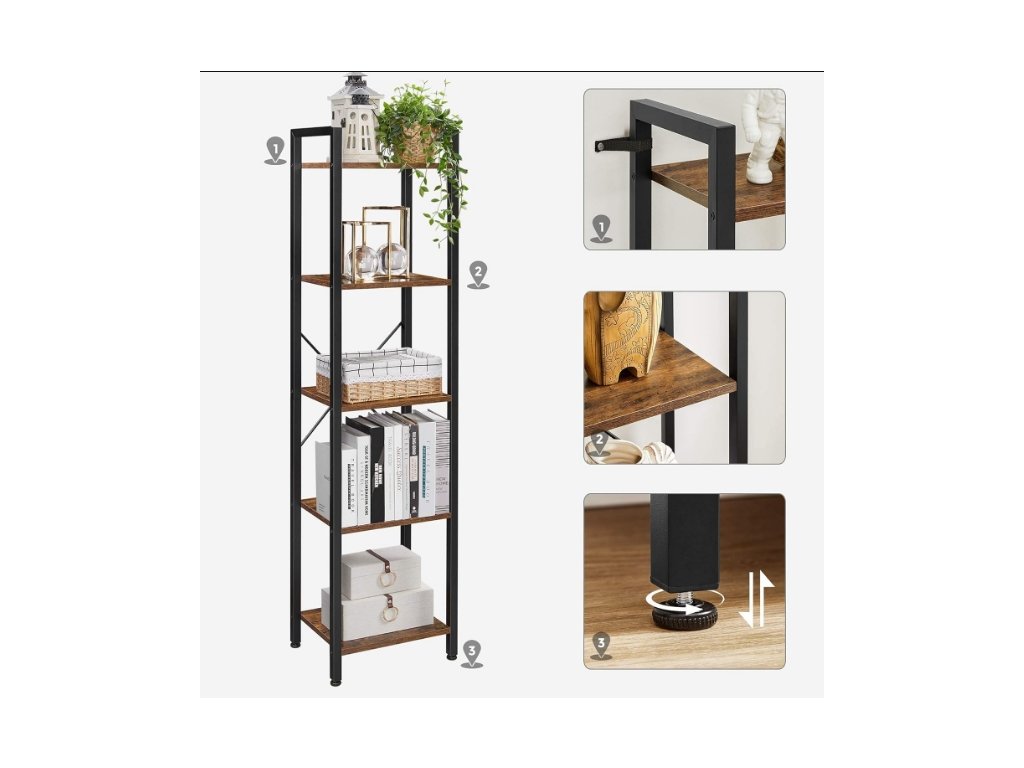 Barna TAYLOR polc fekete konstrukcióval, 5 polccal