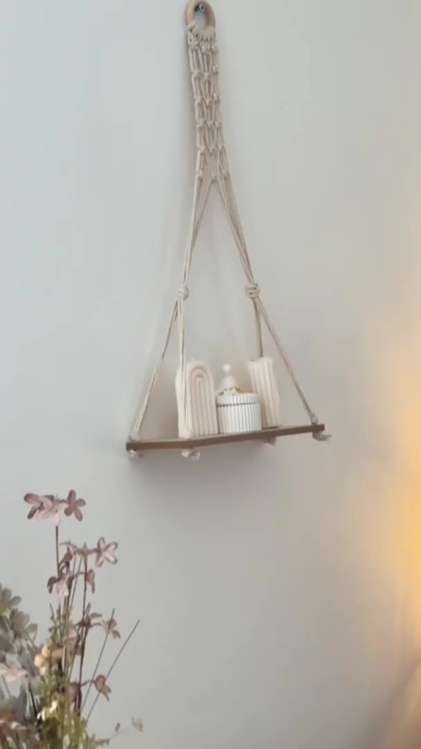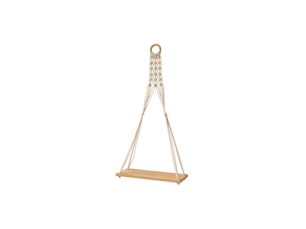 Hozzon egy csipetnyi skandináv nyugalmat és harmóniát az otthonába ezzel a stílusos függő polccal. Az egyszerű kialakítás macramé elemekkel és természetes fa dekorációval otthonos légkört teremt, amely a hygge stílusra jellemző. Kiválóan alkalmas kedvenc dekorációk, növények vagy apróságok kiállítására, amelyek személyesebbé teszik otthonát. Válassza ezt a praktikus és elegáns kiegészítőt, és teremtsen olyan teret, ahol kényelmesen és elégedetten érezheti magát.