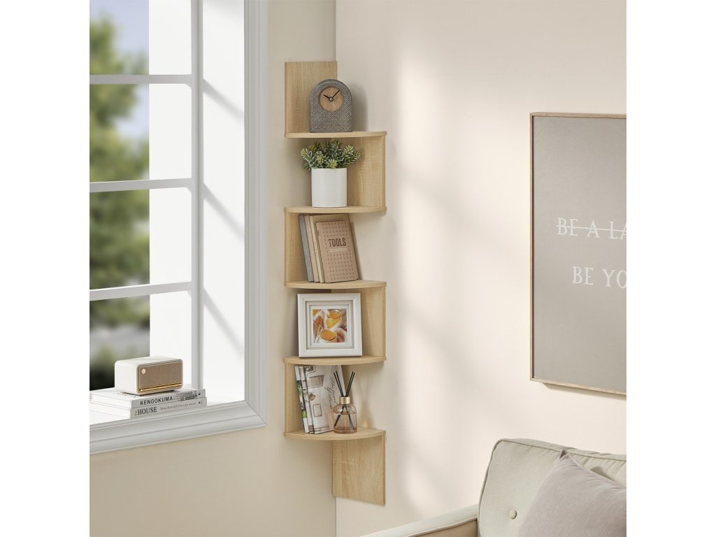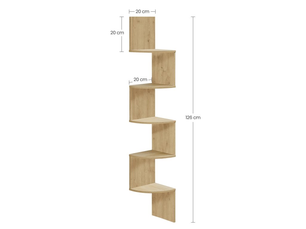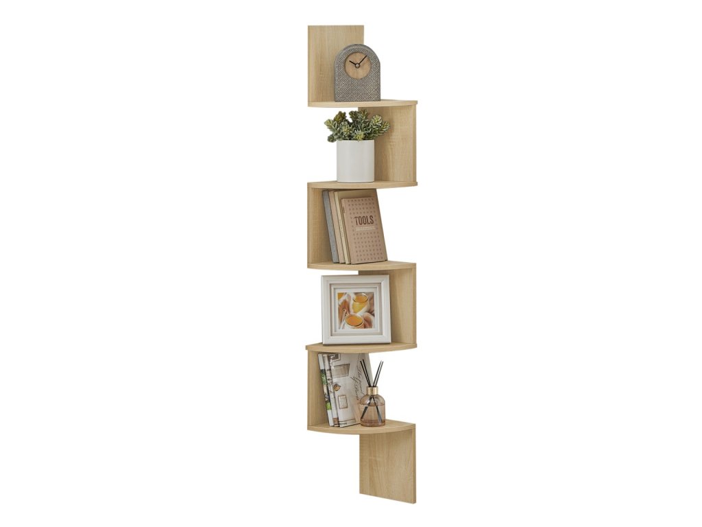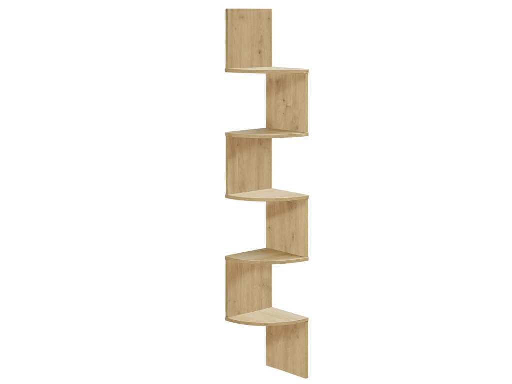 Fali sarokpolc ESTANTE, 5 polccal dub artisan dekorációban, 126x20cm