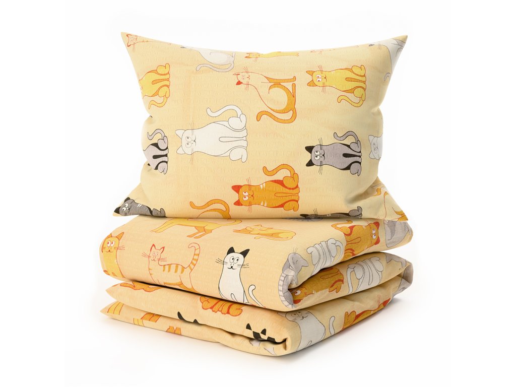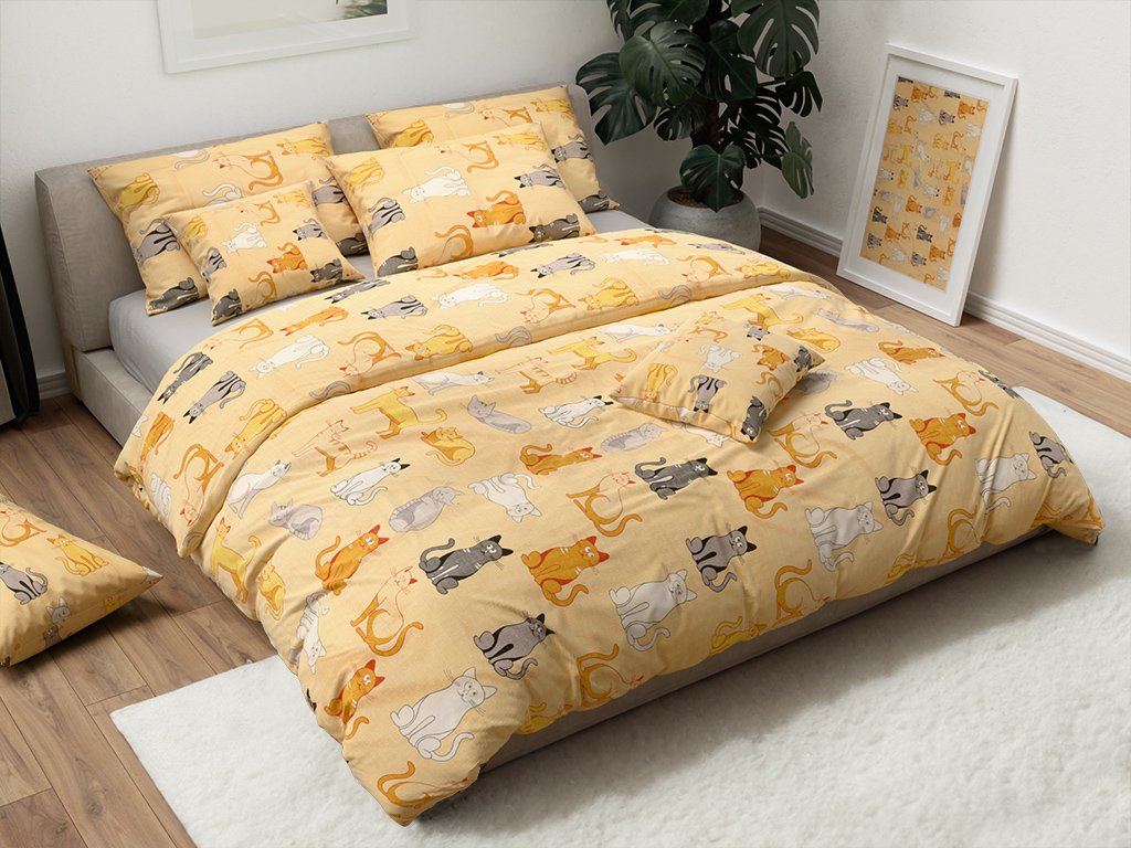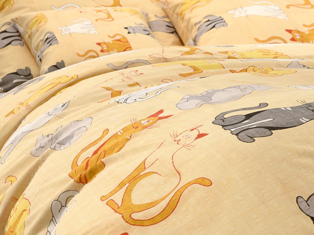 Krepp ágynemű CHROMA CATS krém