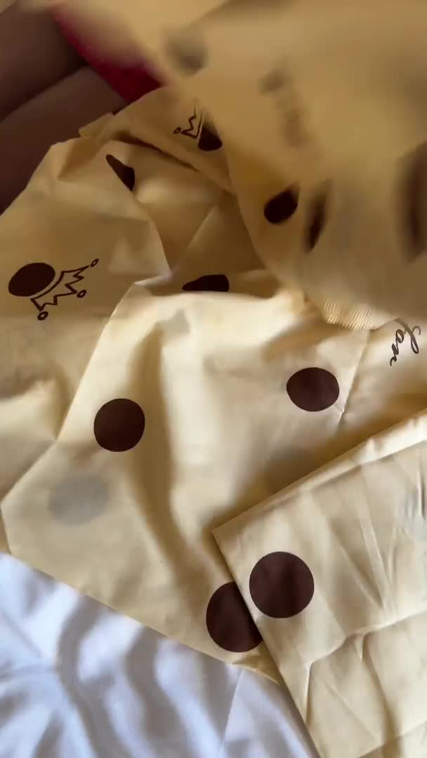 | Ágynemű mintája: | Pöttyök, Felirattal |