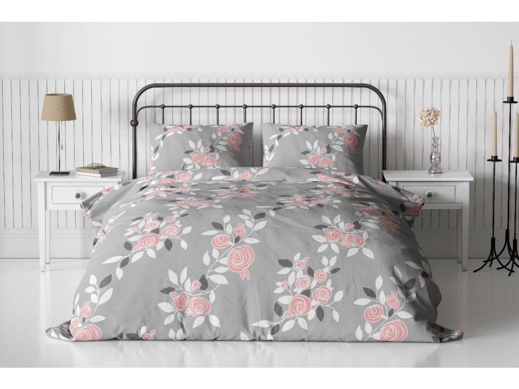 Krepp ágyneműhuzat EFLORIA, szürke