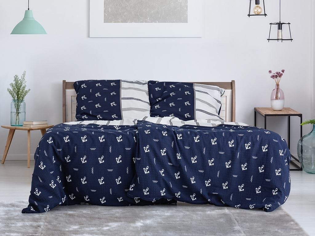 MARINE BLUE AND WHITE sötétkék krepp ágyneműhuzat