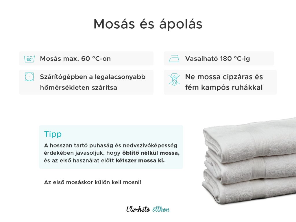 - A hosszú távú lágyság, puhaság és vízszívás érdekében nem ajánlott öblítőt használni