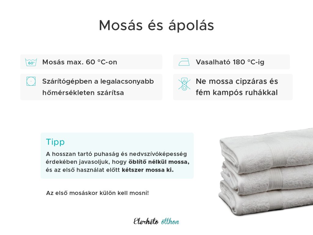 - A hosszantartó puhaság, lágyság és nedvszívás érdekében nem ajánlott textilöblítő használata