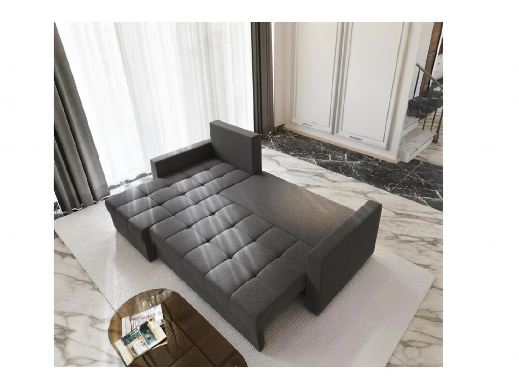 Tmavě šedá rohová pohovka ZENOVA 220x140 cm – rozkládací, oboustranná, stylová a praktická do moderního interiéru.