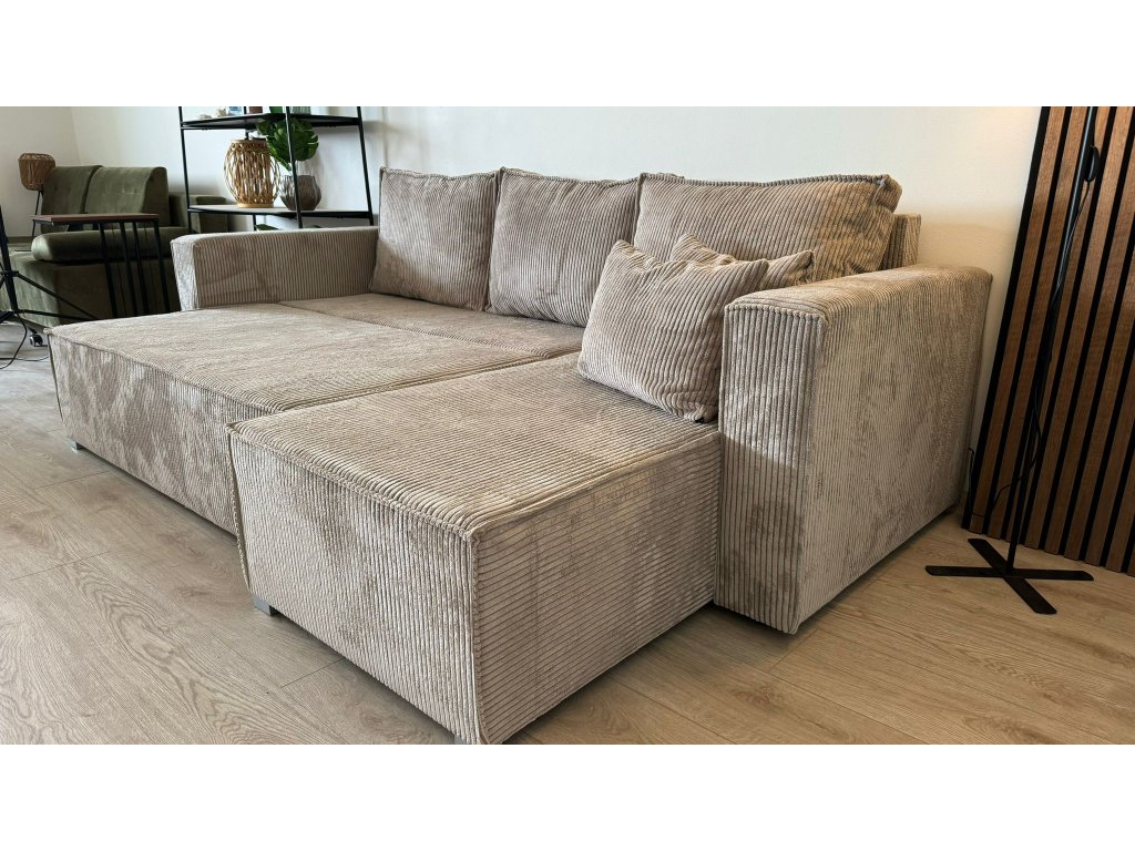 AKCIÓ Világos bézs sarokkanapé SMART COSARO, kétoldalas + 2 párna INGYEN II. osztály