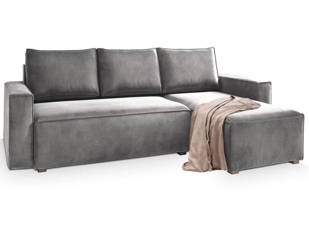 AKCIÓ Világosszürke kihúzható sarokkanapé CAVELO, kétoldalas II. osztály
