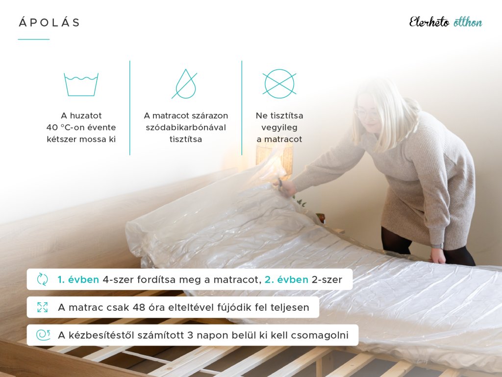 - Ne terhelje azonnal a matracot - a matrac akár 48 óráig is eltarthat, amíg visszanyeri eredeti állapotát