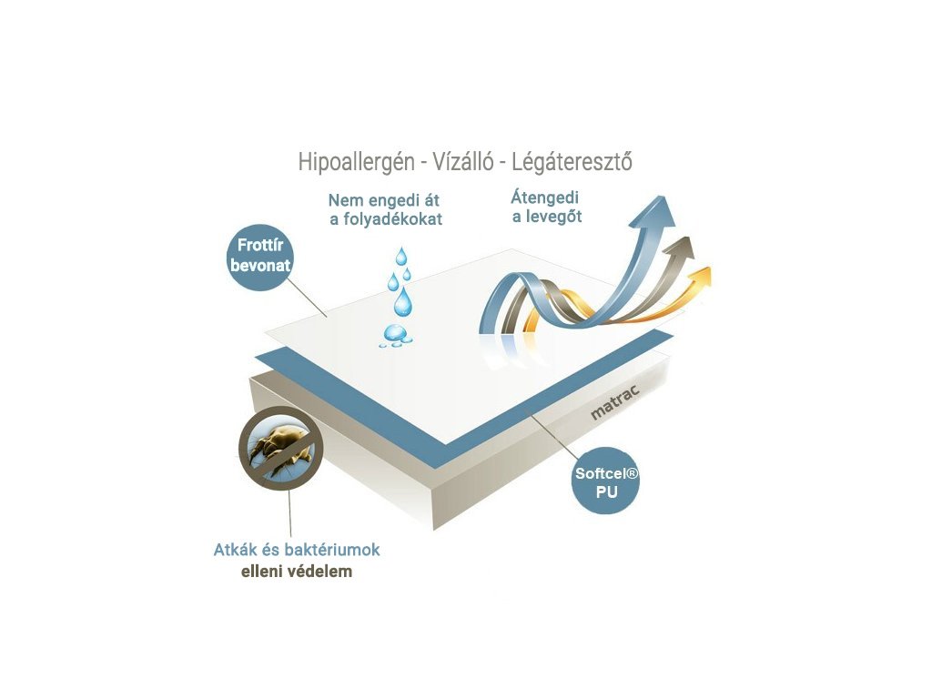 A matrac védelme fontosabb, mint gondolná. Minden ember, legyen az gyerek vagy felnőtt, természetesen izzad. Az éjszaka folyamán akár egy liter verejtéket is izzadunk, amelyet beszív az ágynemű és a matrac. A matracvédő javítja az ágy általános higiéniáját. Ezenkívül véd a mechanikai sérülésektől, a szennyeződéstől, a poratkától, az izzadságtól és a vizelettől is. Nagyszerű segítő kiságyak vagy gyermekek első ágya esetében. Felnőttek számára is hasznos lehet normál matracvédőként, idősek vagy tartósan ágyhoz kötött betegek számára különösképpen. A vízálló védőréteg védő és folyadékot át nem eresztő réteget képez. Nem kell aggódnia a műanyagon alvás érzésétől, a matracvédő felső rétege mikroszálas anyagból készült, mely kíméletes a bőrhöz és kellemes tapintású.