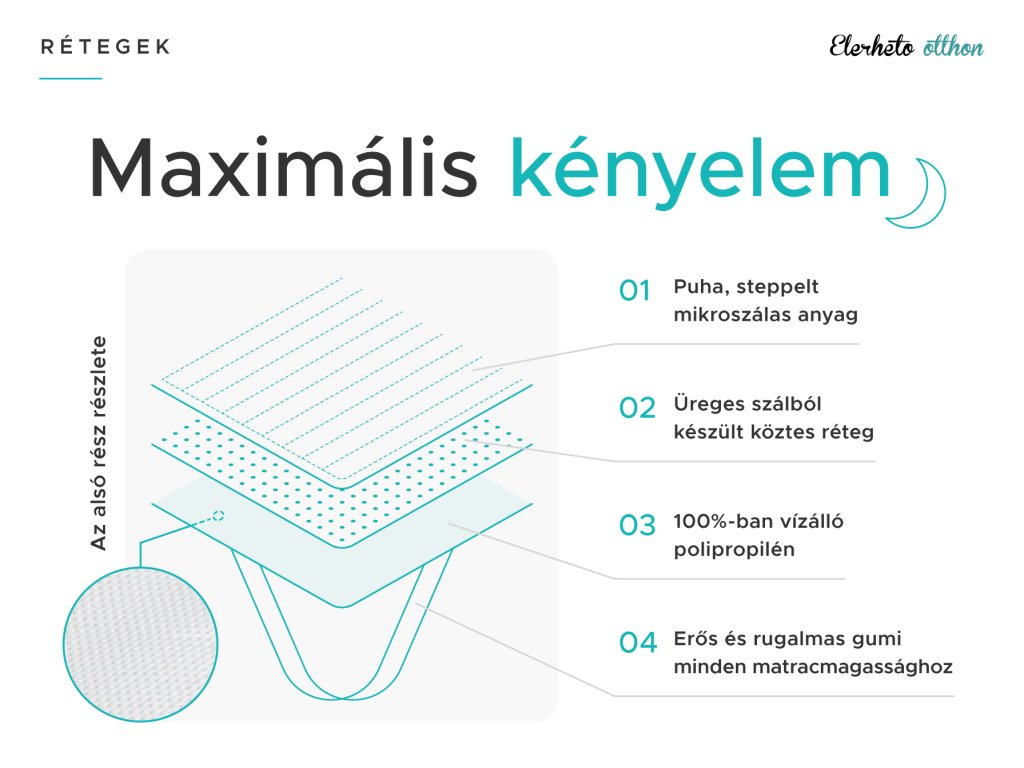 A matrac védelme fontosabb, mint gondolná. Minden ember, legyen az gyerek vagy felnőtt, természetesen izzad. Az éjszaka folyamán akár egy liter verejtéket is izzadunk, amelyet beszív az ágynemű és a matrac. A matracvédő javítja az ágy általános higiéniáját. Ezenkívül véd a mechanikai sérülésektől, a szennyeződéstől, a poratkától, az izzadságtól és a vizelettől is. Nagyszerű segítő kiságyak vagy gyermekek első ágya esetében. Felnőttek számára is hasznos lehet normál matracvédőként, idősek vagy tartósan ágyhoz kötött betegek számára különösképpen. A vízálló védőréteg védő és folyadékot át nem eresztő réteget képez. Nem kell aggódnia a műanyagon alvás érzésétől, a matracvédő felső rétege mikroszálas anyagból készült, mely kíméletes a bőrhöz és kellemes tapintású.