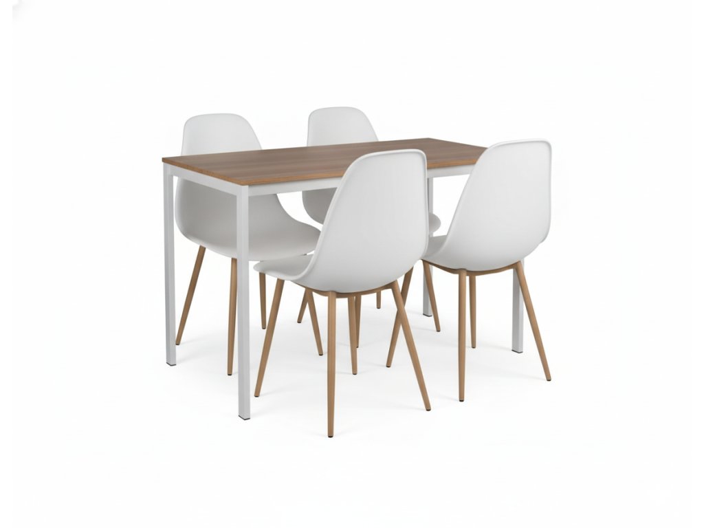 Étkezőgarnitúra 1 + 4, RAMOD asztal fehér/tölgy dekor + OSAKA szék fehér