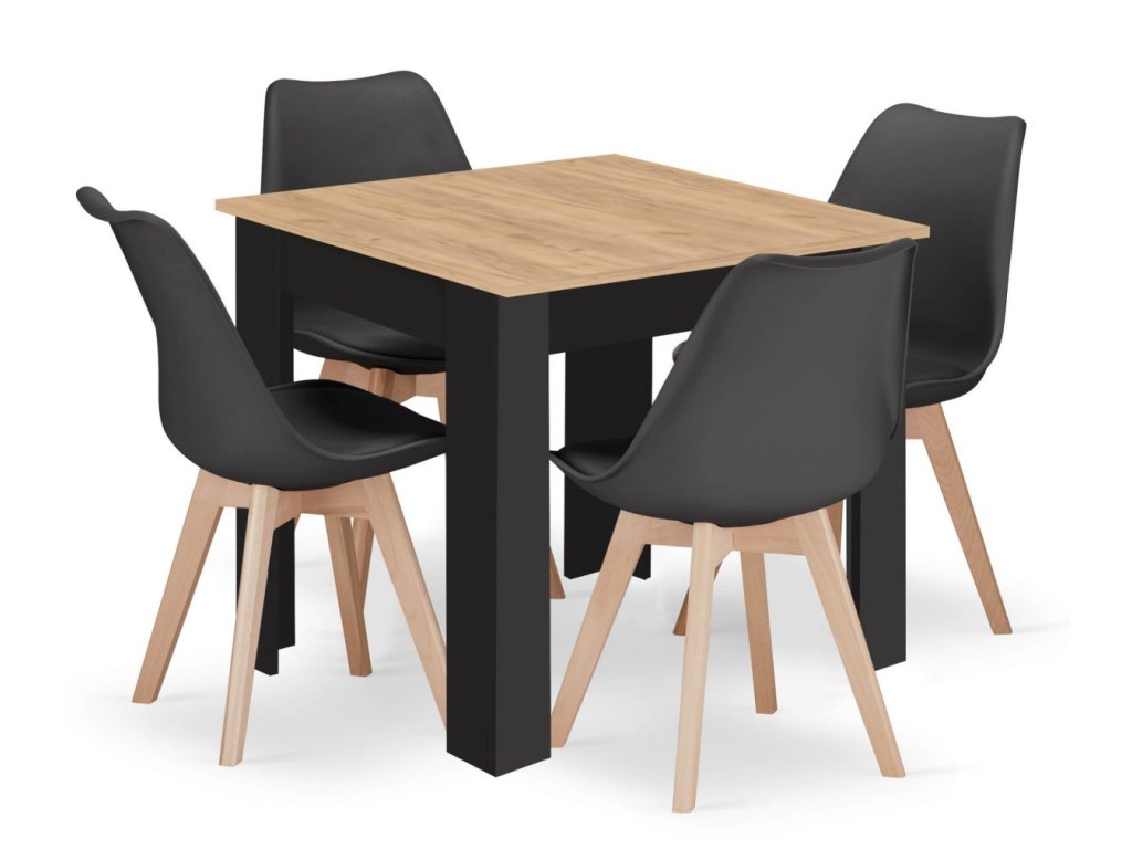 Fekete étkező szett 1 + 4, MADO ARTISAN asztal 80x80 + BALI MARK fekete szék