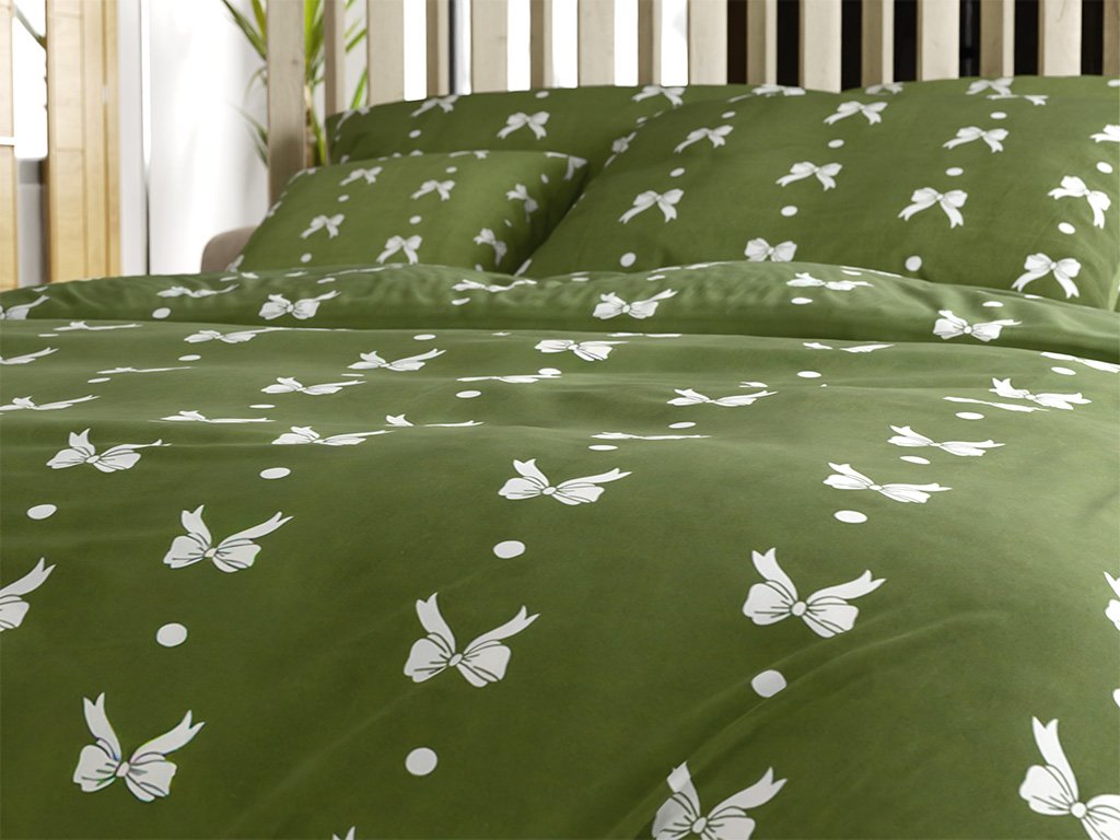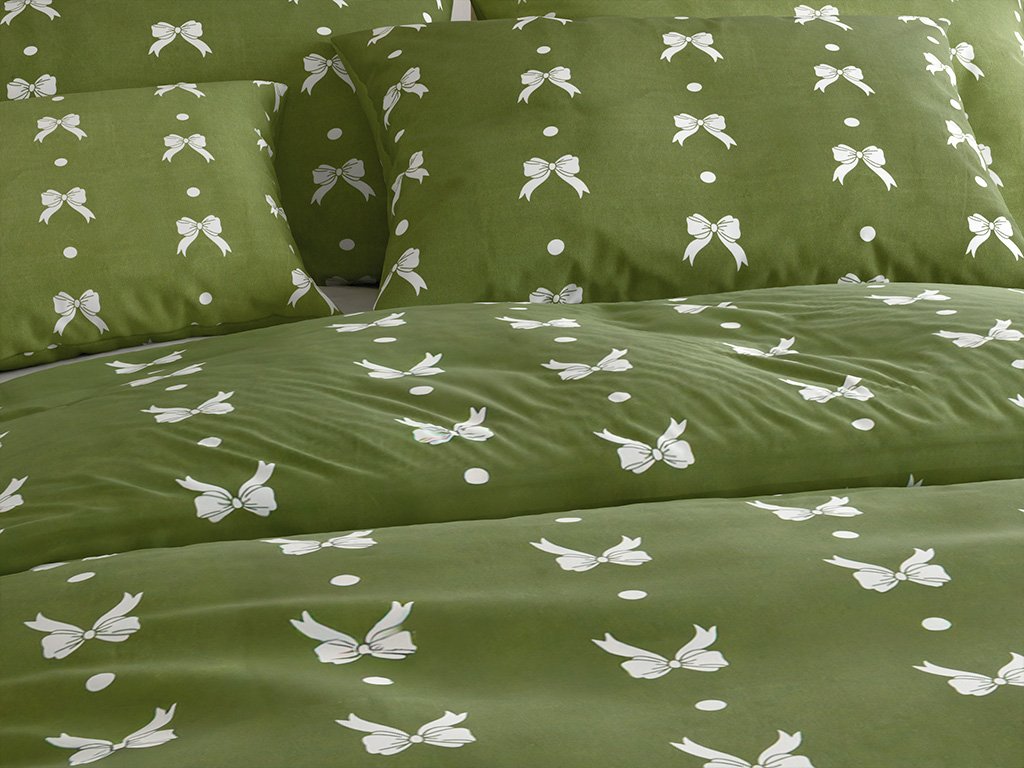 Mikroflanel ágyneműhuzat WHITE BOW zöld