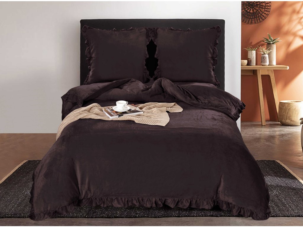KOLANTE mikroplüss ágyneműhuzat sötétbarna
