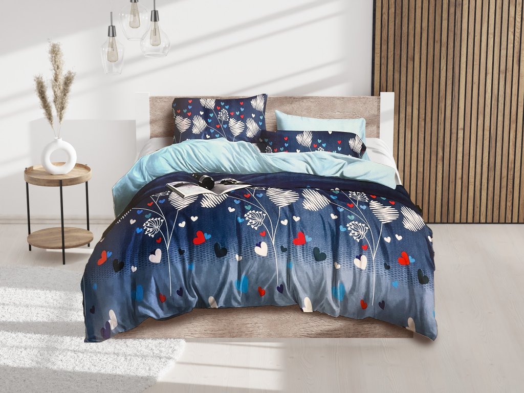 LOVE FLOWERS kék mikroplüss ágynemű + párnahuzat 40 x 50 cm ingyen