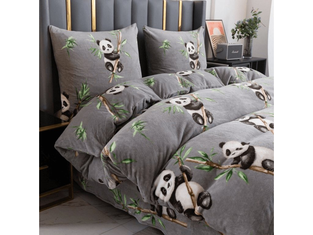 Mikroplüss ágyneműhuzat HAPPY PANDA szürke