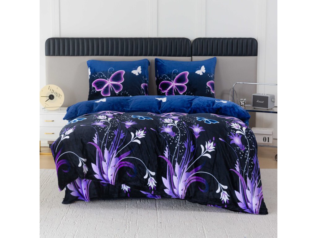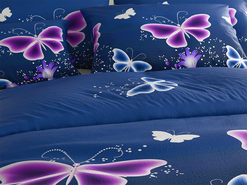 Mikroplüss ágyneműhuzat VIOLET BUTTERFLY sötétkék