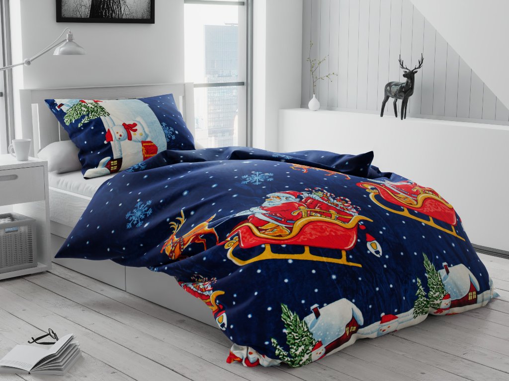 MIKULÁS A SZÁNKÁN KÉK mikroplüss ágyneműhuzat