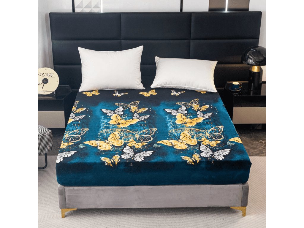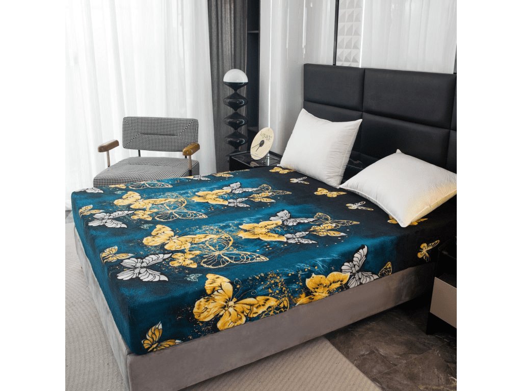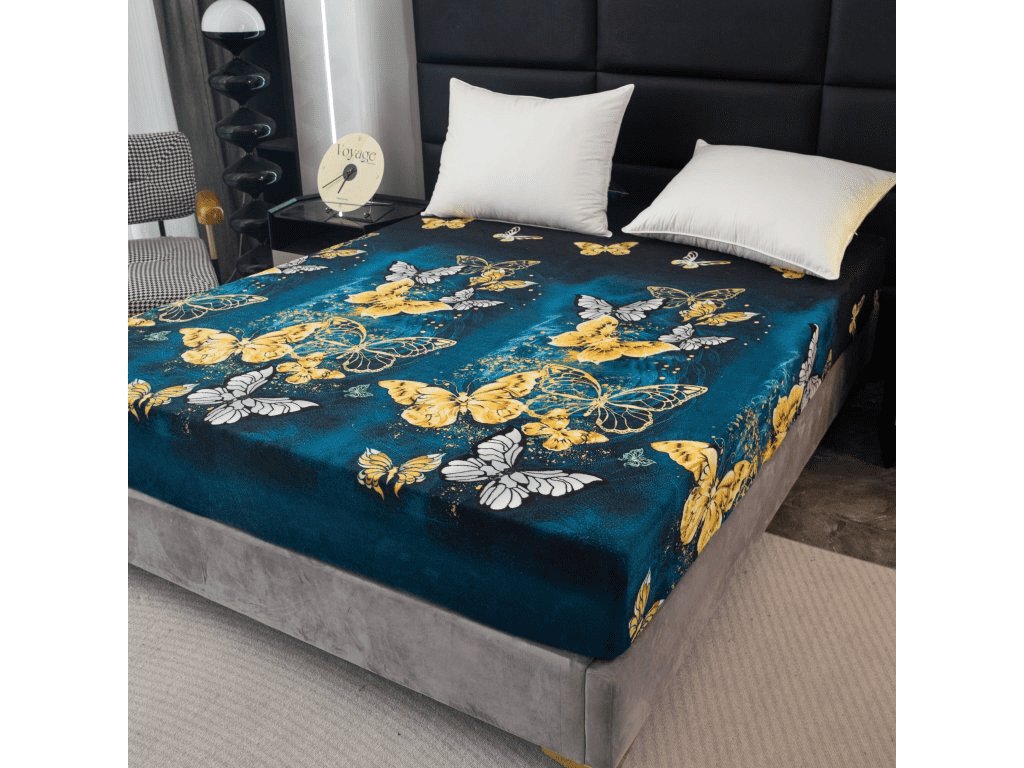 ARANY ÉS FEHÉR PILLANGÓ 90x200 cm sötétzöld mikroplüss lepedő