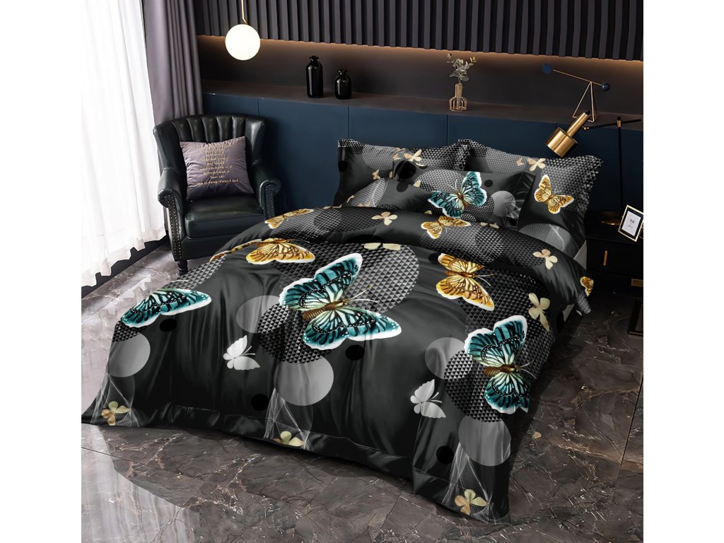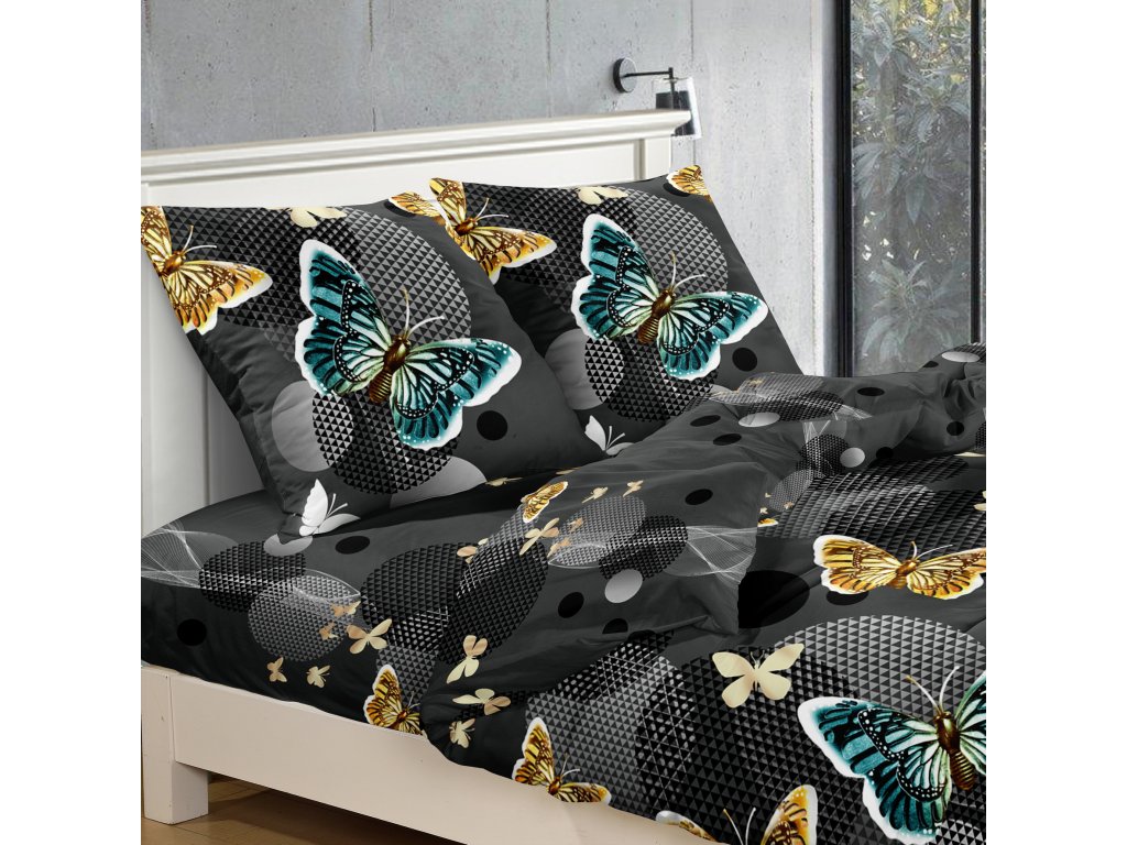 ARANY ÉS TÜRKIZ LEPKE sötétszürke mikroszálas ágyneműhuzat