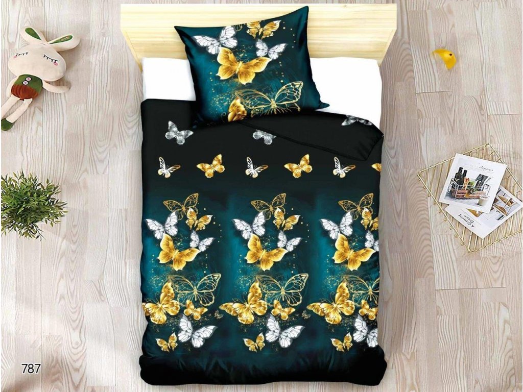 Mikroszálas ágyneműhuzat ARANY ÉS FEHÉR PILLANGÓ fekete
