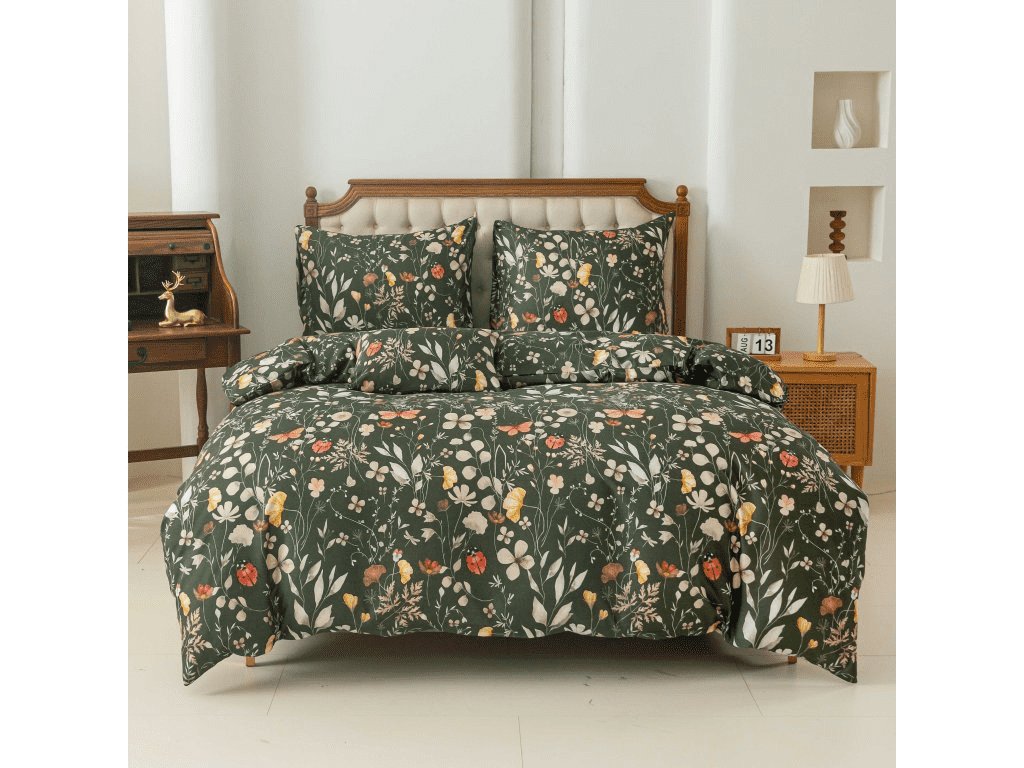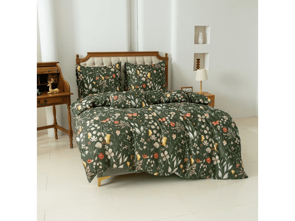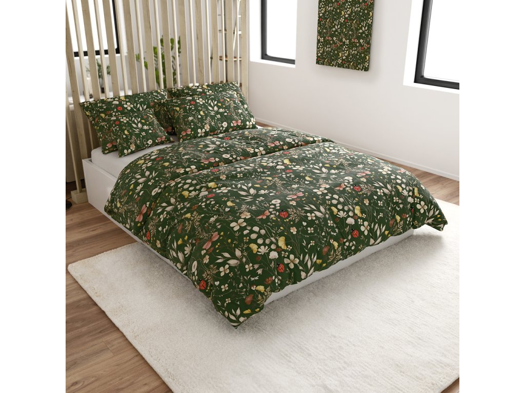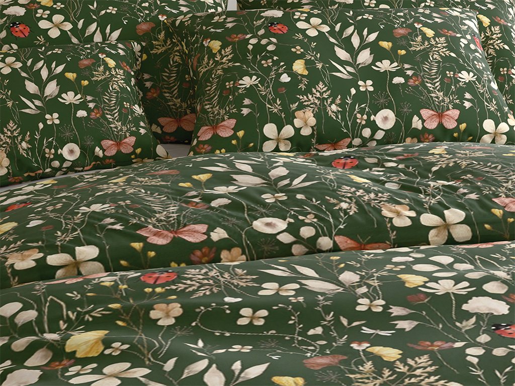 COLORFUL MEADOW sötétzöld mikroszálas ágynemű