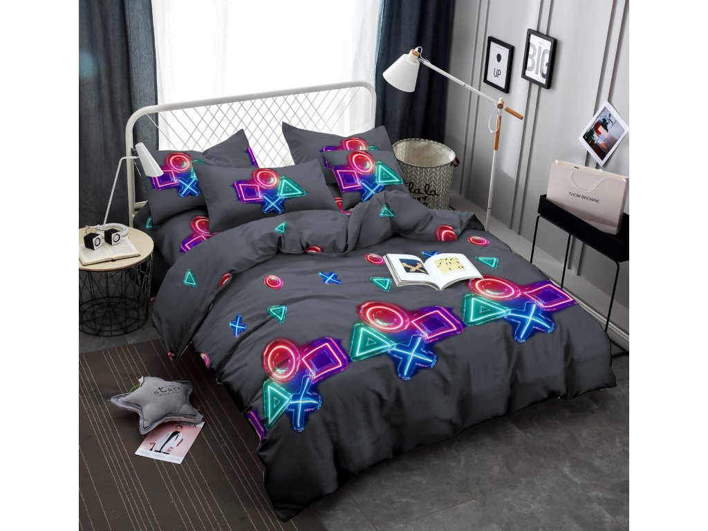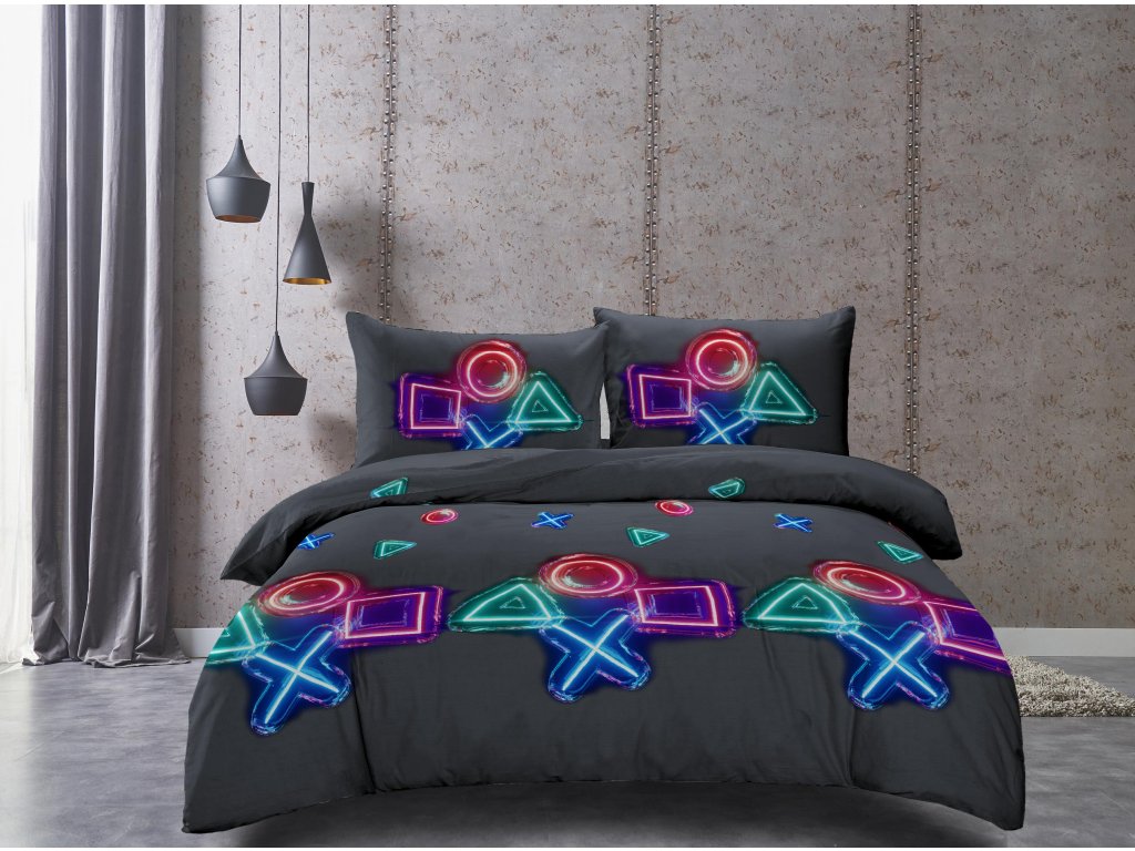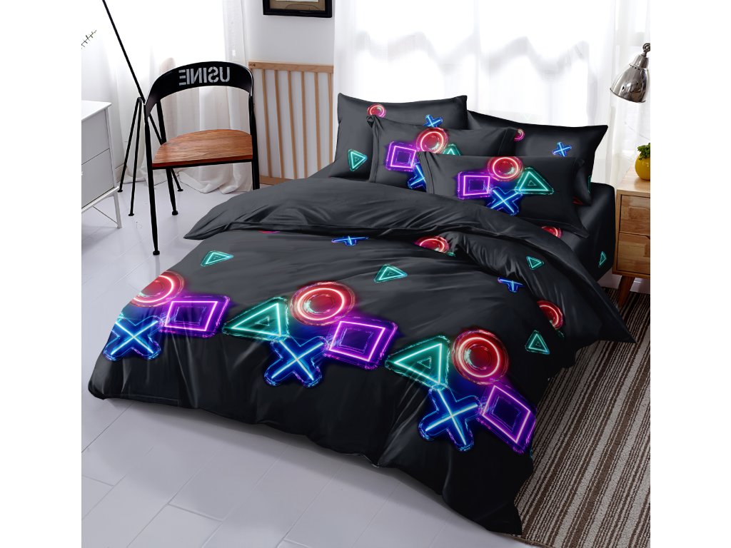 GAMING SYMBOLS fekete mikroszálas ágyneműhuzat