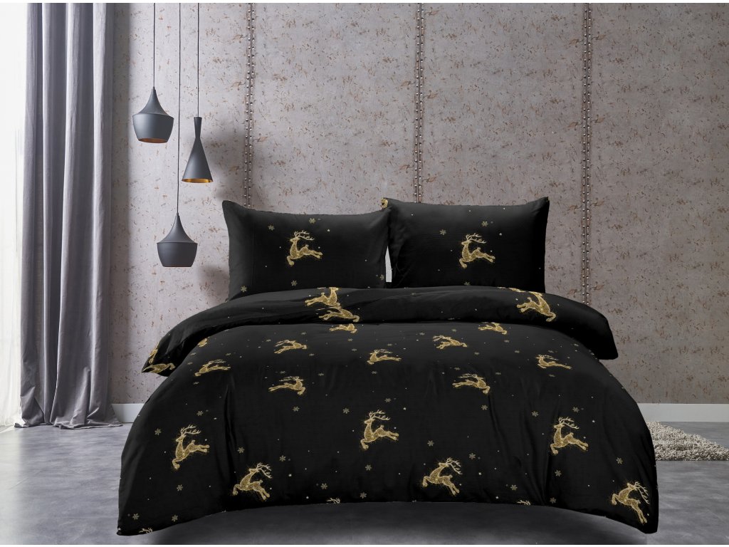 ARANY RÉNSZARVAS fekete mikroszálas ágyneműhuzat