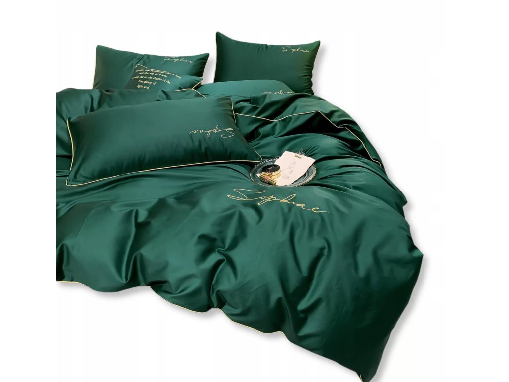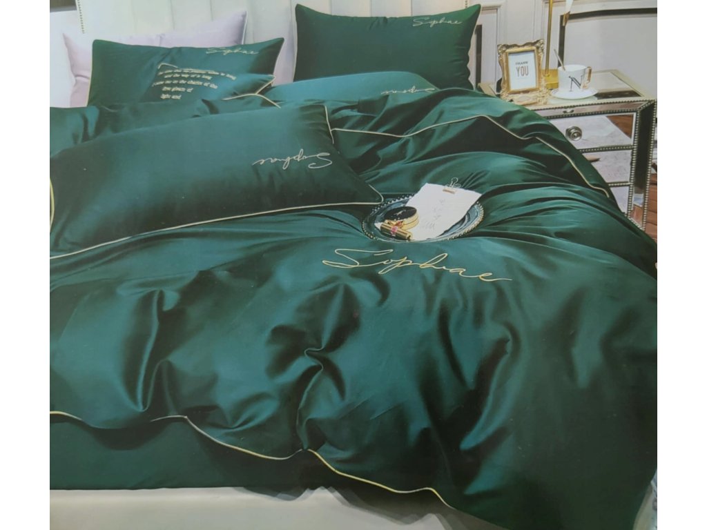 Mikroszálas ágynemű hímzéssel SOPHAE sötétzöld